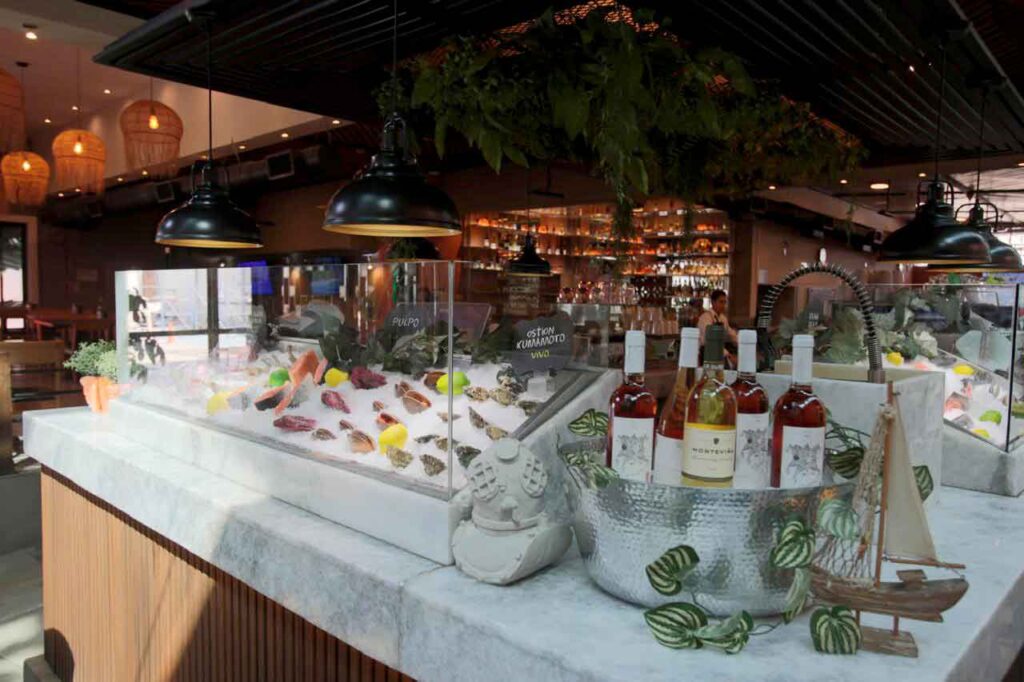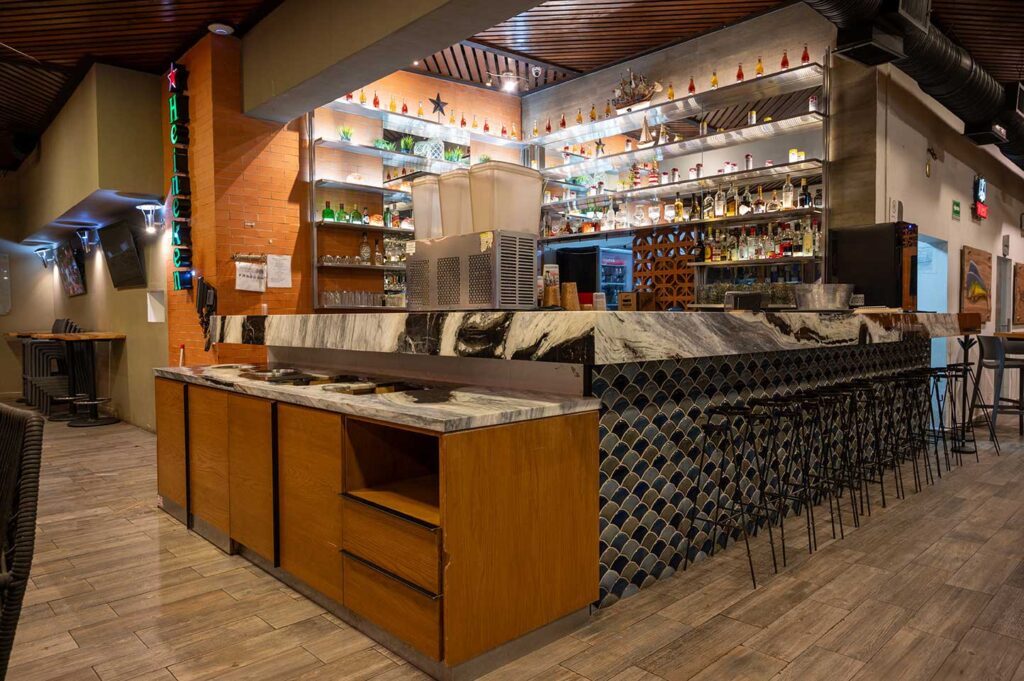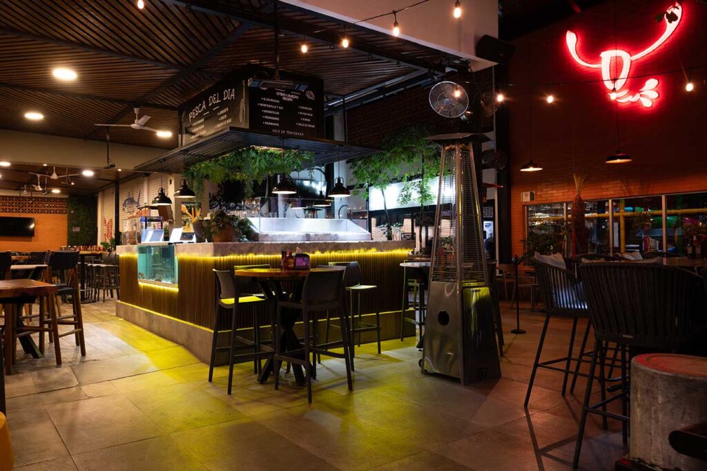 Espacios modernos y vibrantes para disfrutar de nuestros mariscos y especialidades. Ideal para quienes buscan una comida deliciosa en un lugar con estilo.