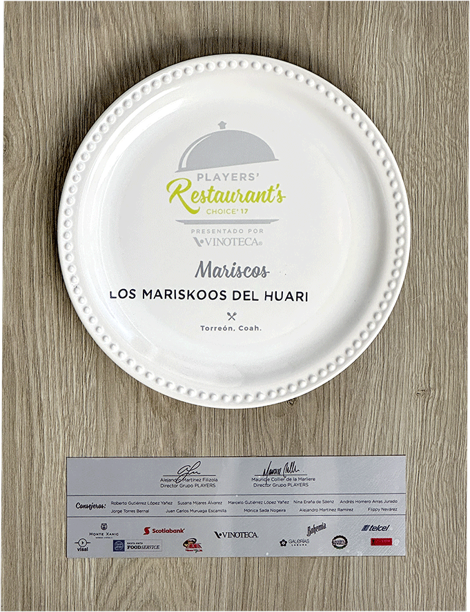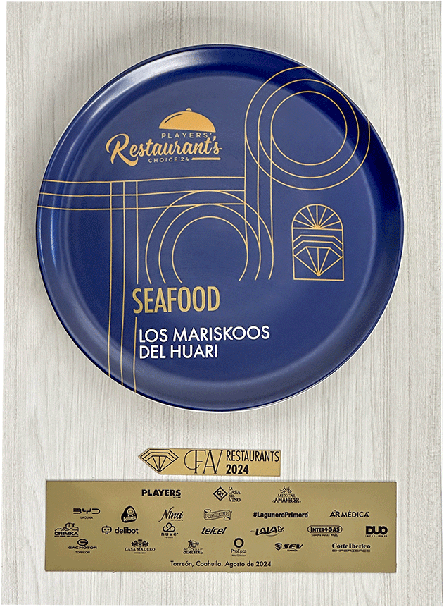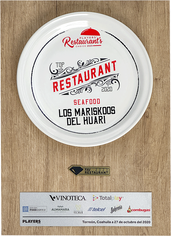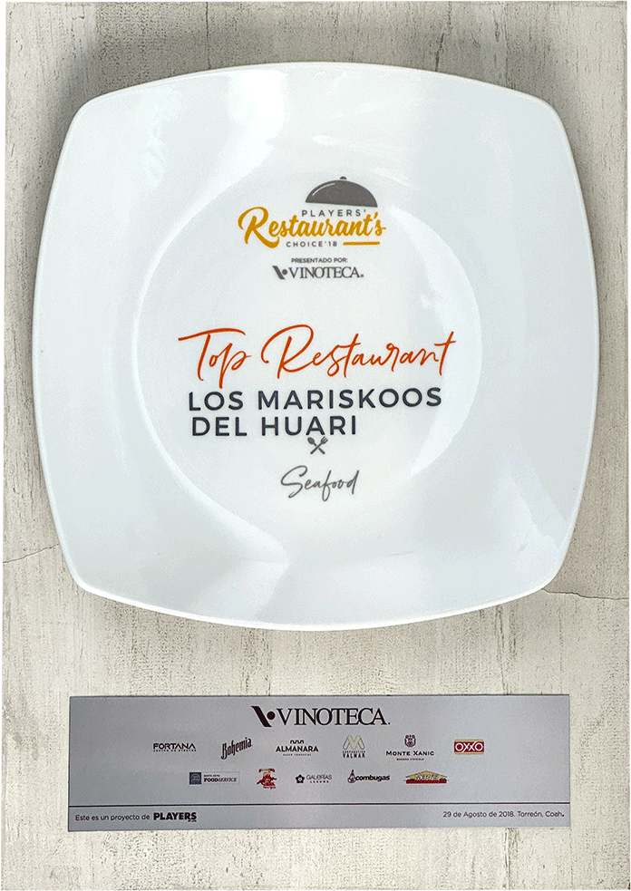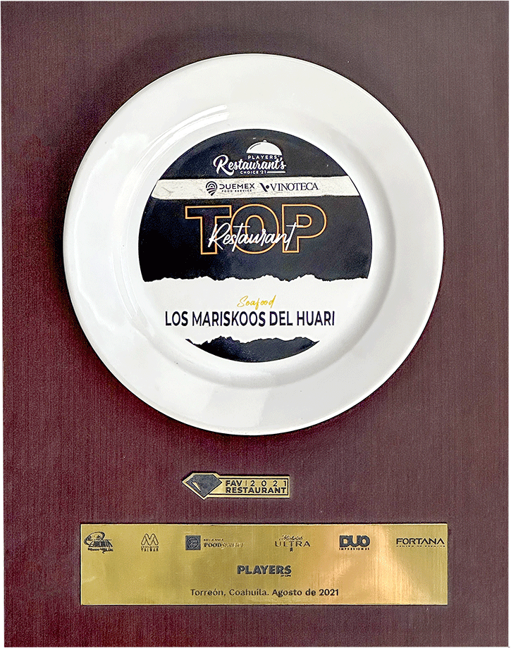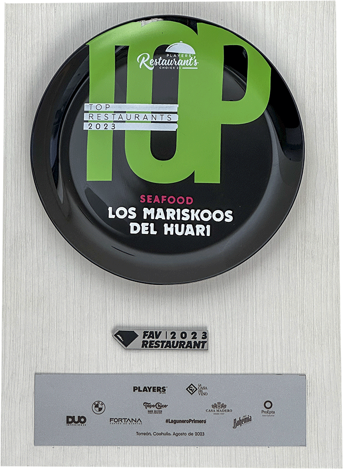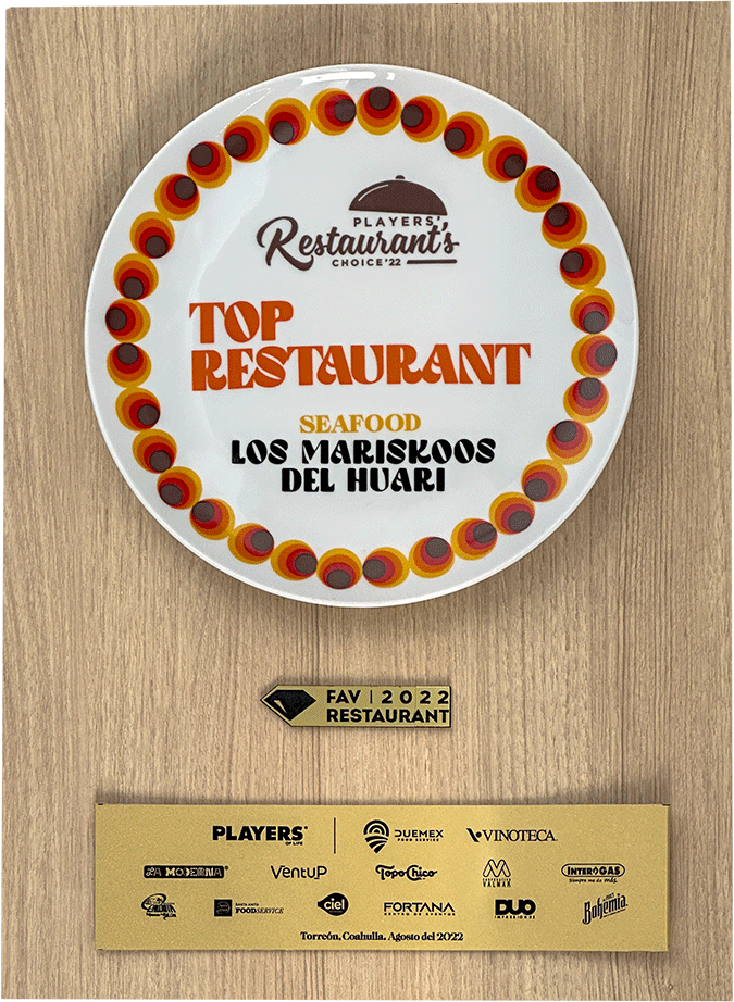 Ha sido galardonado En 7 Ocasiones continuas por la revista Player´s. este es el Resultado de más de 30 años de experiencia de la Dirección general. Los Mariskoos del Huari se ha consolidado como uno de los mejores restaurantes de la región Lagunera. Este prestigio ha sido reconocido por los laguneros y algunos premios como lo son premios Best restaurant.